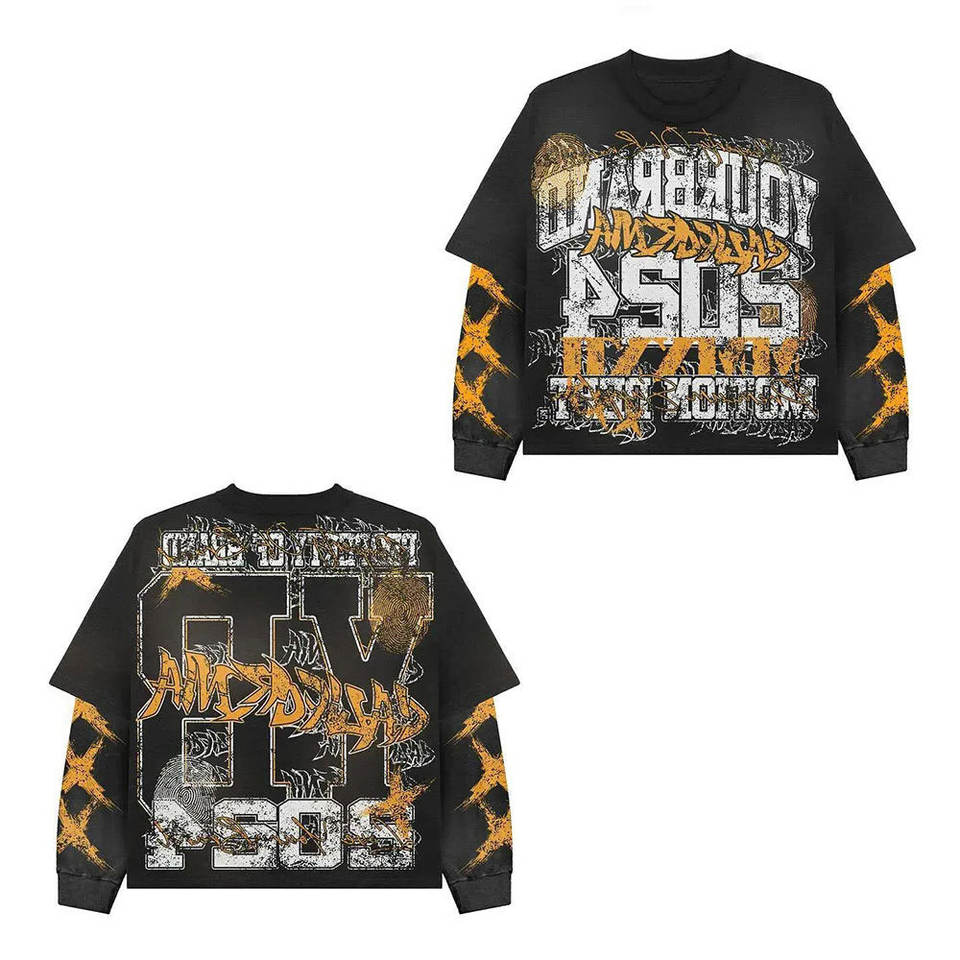 เสื้อยืดผ้าฝ้ายเนื้อนุ่มแขนสองชั้นพิมพ์ลายบนหน้าจอสดใสใส่สบาย