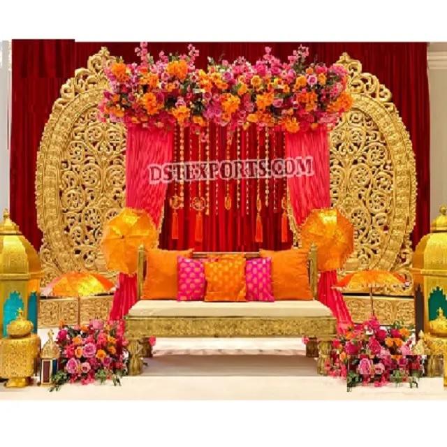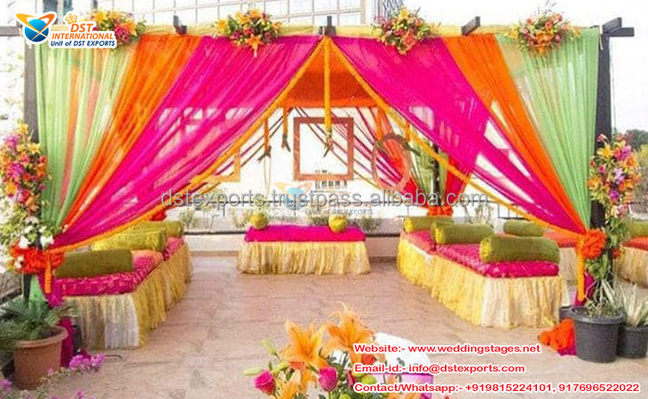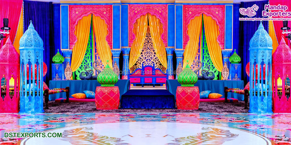 ชุดรูปแบบสดใสไม่เหมือนใครตกแต่งเวทีงานแต่งสำหรับ haldi & mehindi คืนงานแต่งงานพิธี/การตั้งค่า