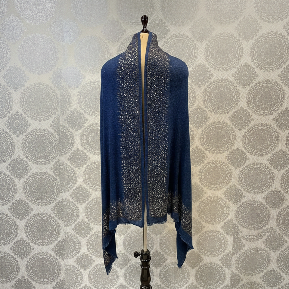 ผ้าคลุมไหล่กำมะหยี่โพลีเอสเตอร์แบบดั้งเดิมของแคชเมียร์ สีสันสดใส พร้อมลายปักเพสลีย์และพู่ห้อยอย่างประณีต ชิ้นงานแฟชั่นสำหรับฤดูหนาว
