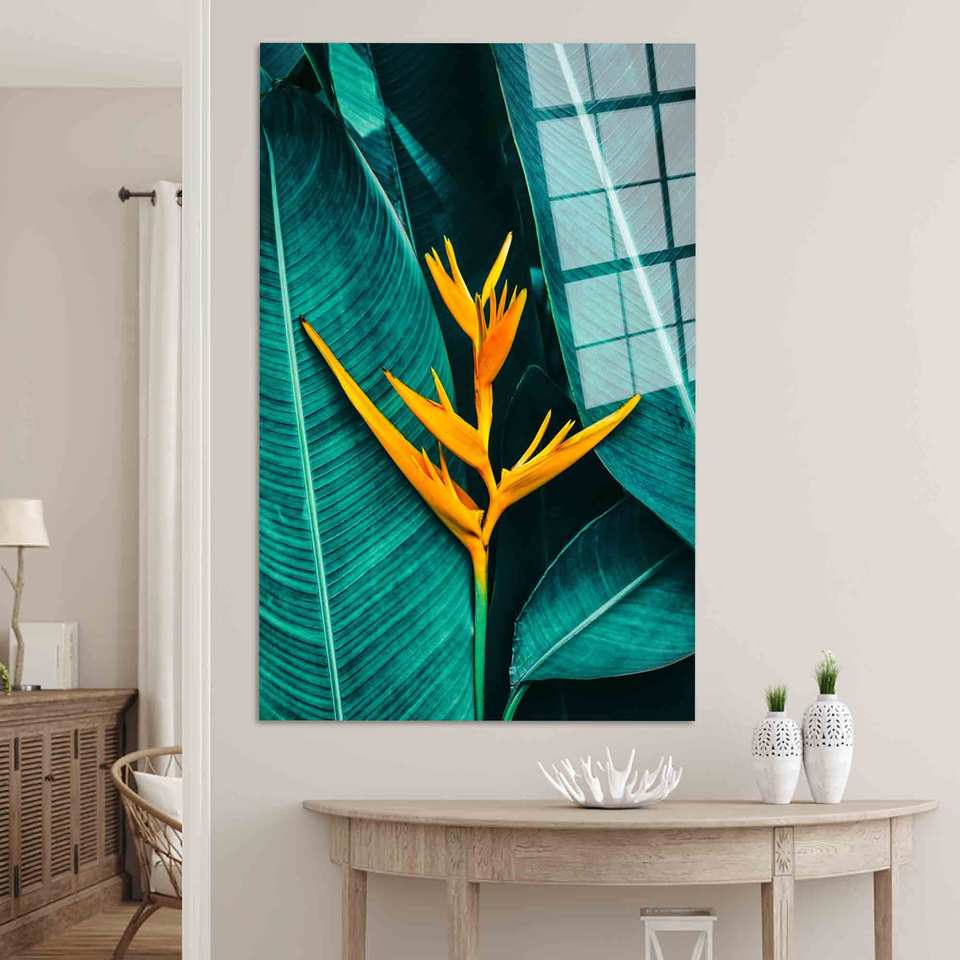 ศิลปะบนผืนผ้าใบพิมพ์ลายดอกไม้เขตร้อนสีสันสดใส - ของตกแต่งผนังสมัยใหม่, ศิลปะบนกระจกนิรภัย