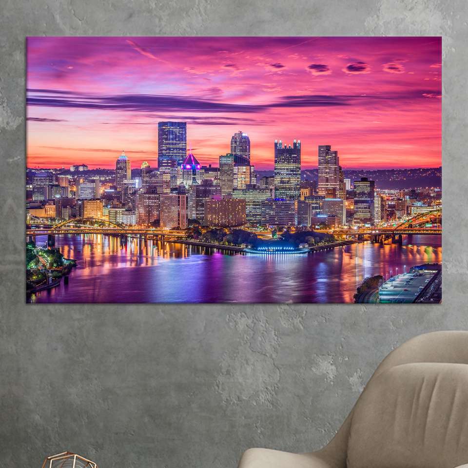 ภาพพิมพ์บนผ้าใบทิวทัศน์กลางคืนในเมืองที่มีชีวิตชีวา: การตกแต่งทิวทัศน์เมืองสมัยใหม่, ผ้าใบหุ้ม