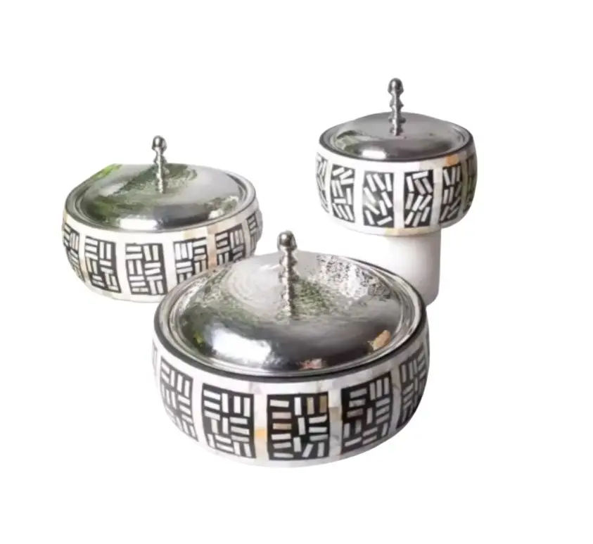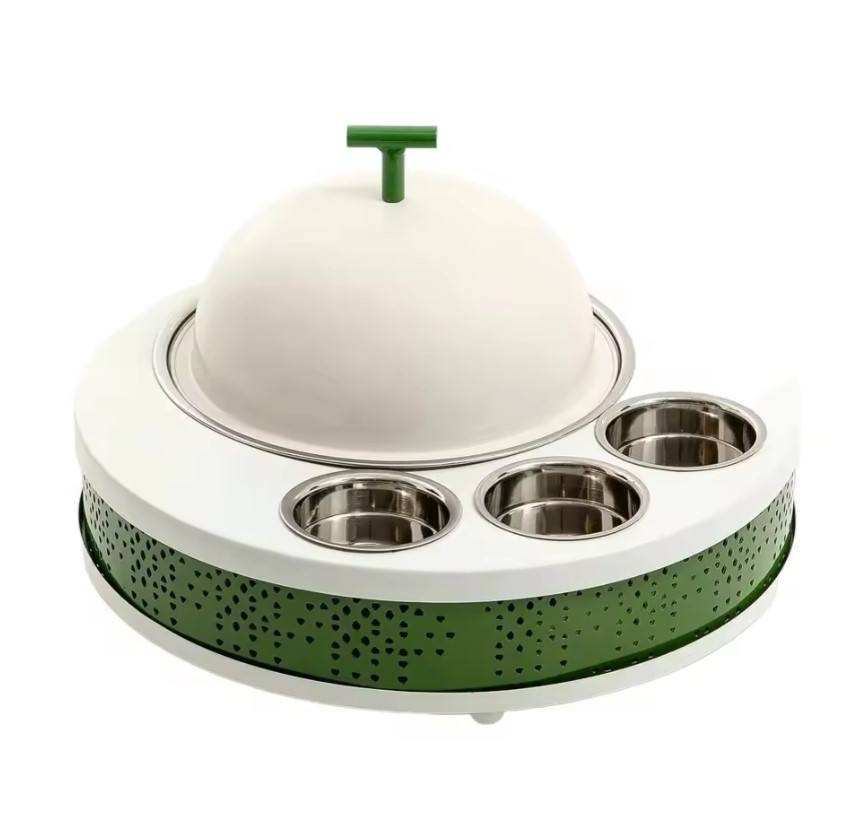 หม้อปรุงอาหารโลหะสีขาวและสีเขียวสดใสดีไซน์เนอร์ทรงกลมเซิร์ฟเวอร์อาหารเหมาะสำหรับเสิร์ฟบนโต๊ะและอุ่นอาหารยอดนิยม
