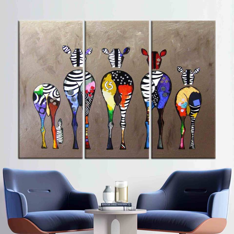 ศิลปะบนผืนผ้าใบลายม้าลายสีสันสดใส - ดีไซน์ลายพิมพ์แนวสตรีทสมัยใหม่,3P:ห่อหุ้มแบบแกลเลอรี่