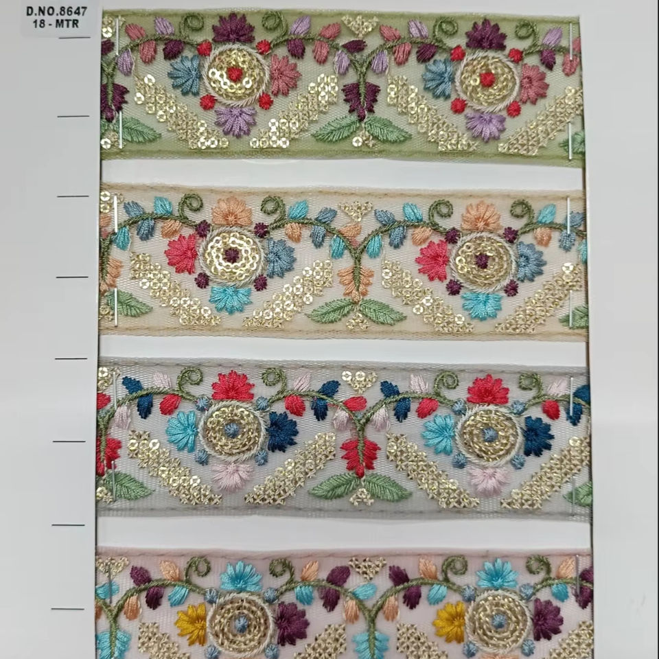 ผ้าลูกไม้ปักลายดอกไม้สีสันสดใสและมีลวดลายที่ซับซ้อนเหมาะสำหรับแฟชั่นระดับไฮเอนด์