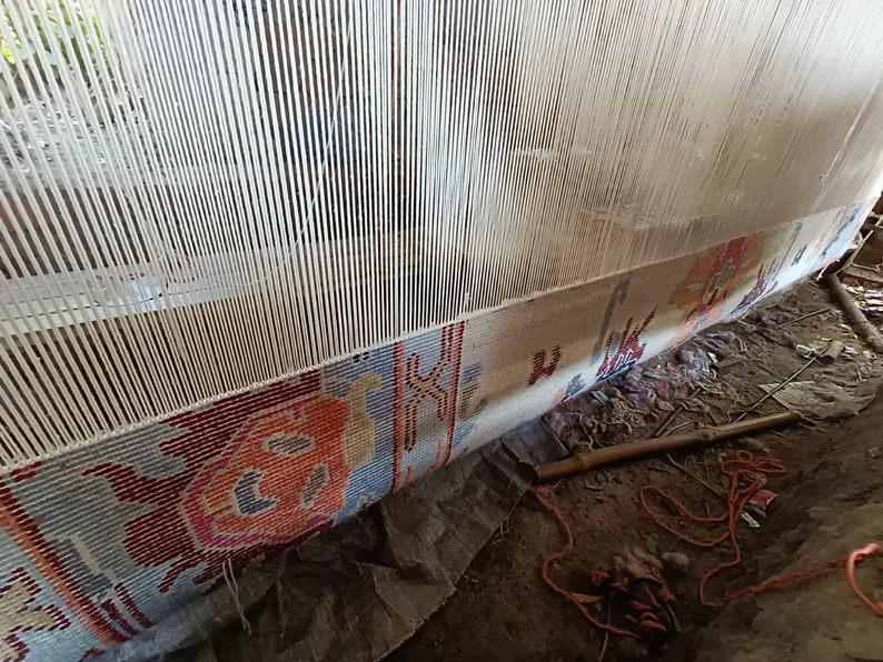 มือที่ผูกปม, เสาเข็มตัด, ทำด้วยมือ, ทอ, เครื่องทำ, ข้าม, ผ้าใยสังเคราะห์เทคนิค