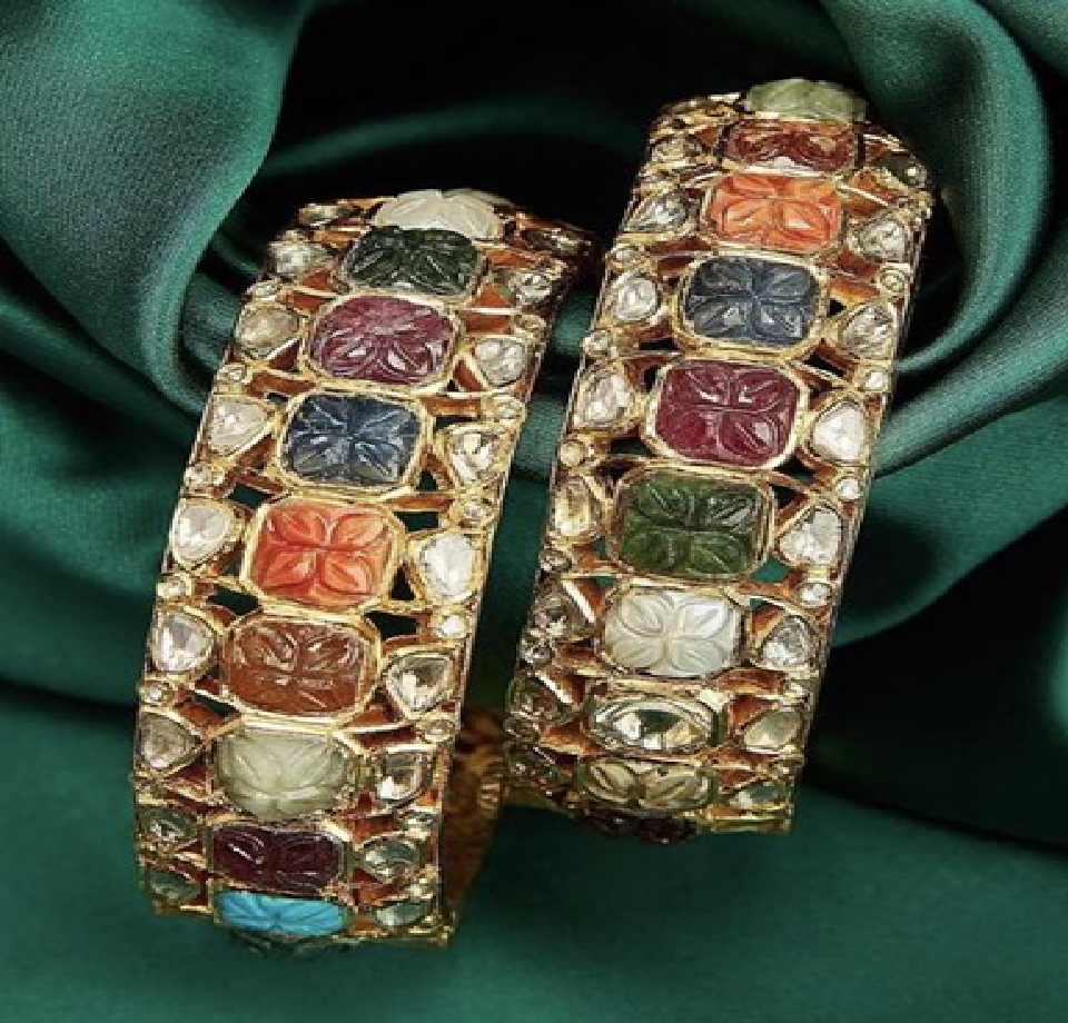กำไลทองเหลืองสีสันสดใส ประดับด้วยหินหลากสีทรงสี่เหลี่ยมจัตุรัส มีจำหน่ายในราคาขายส่ง