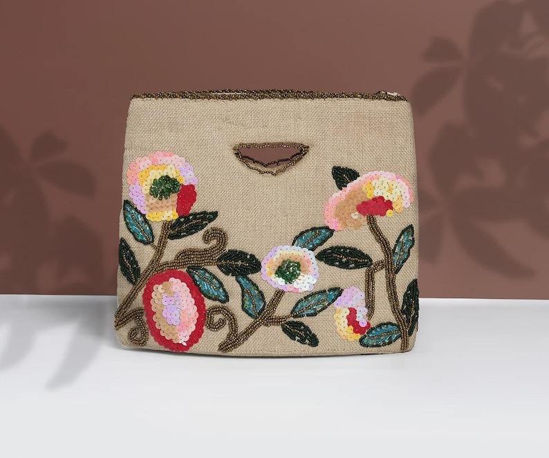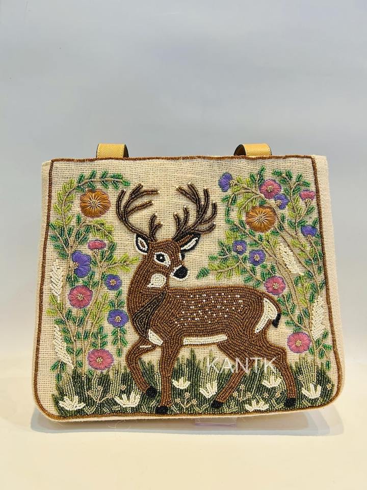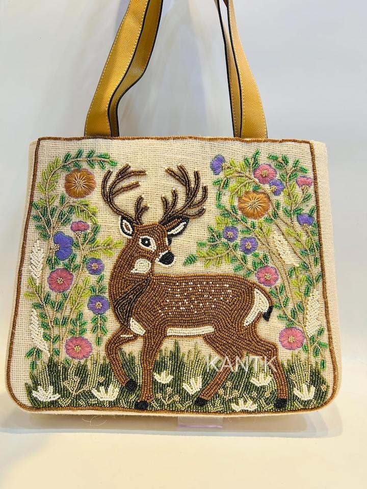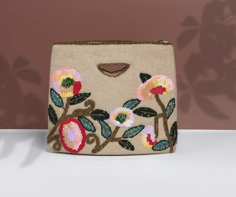 ชุดกระเป๋าผ้าปอทลีงานฝีมือสีสันสดใส พร้อมผ้าพิมพ์ลายสวยงาม ประดับด้วยลูกปัดอย่างประณีต และกระเป๋าแบบดึงเชือกแบบดั้งเดิม