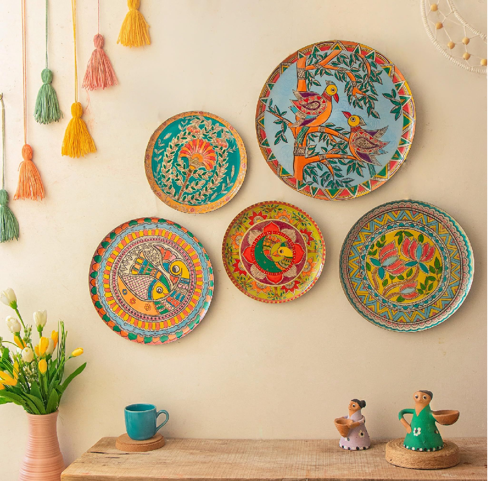 แผ่นผนังสีเหลืองสดใส, ศิลปะพื้นบ้าน rajasthani, ผู้ขับขี่อูฐ, คู่แบบดั้งเดิม, นก, ต้นไม้แห่งชีวิต, ในราคาขายส่ง