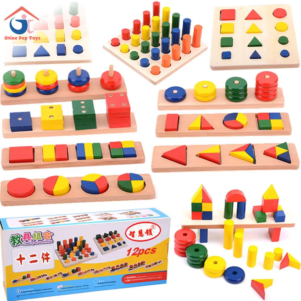 ชุดของเล่นไม้เสริมพัฒนาการทางประสาทสัมผัสเรื่องเรขาคณิต ฝึกการจดจำสีและการเรียงรูปทรง วัสดุการศึกษาแบบมอนเตสซอรี่ ของเล่นคณิตศาสตร์ มอนเตสซอรี่