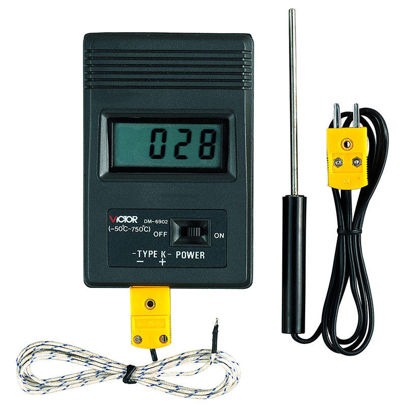 วิคเตอร์ เครื่องวัดอุณหภูมิแบบดิจิตอล DM-6902 จอแสดงผล LCD ชนิด K โพรบ 500 มม. เครื่องวัดอุณหภูมิ