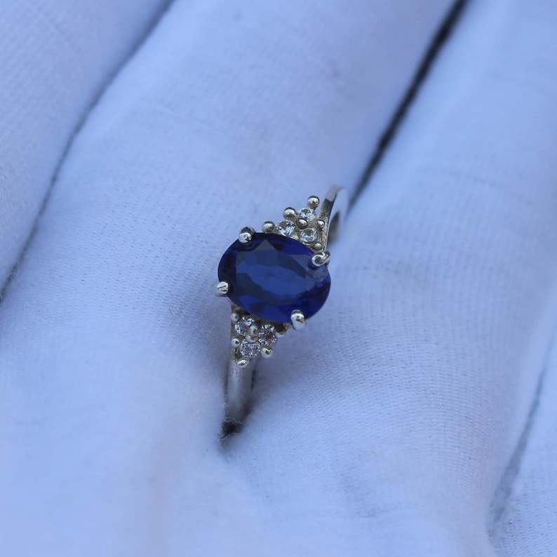 แหวนไพลินสีน้ำเงินวิกตอเรีย แหวนประจำเดือนเกิดเดือนกันยายน แหวนสัญญา แหวนเงินแท้ ดีไซน์หรูหราทันสมัยสำหรับผู้หญิง