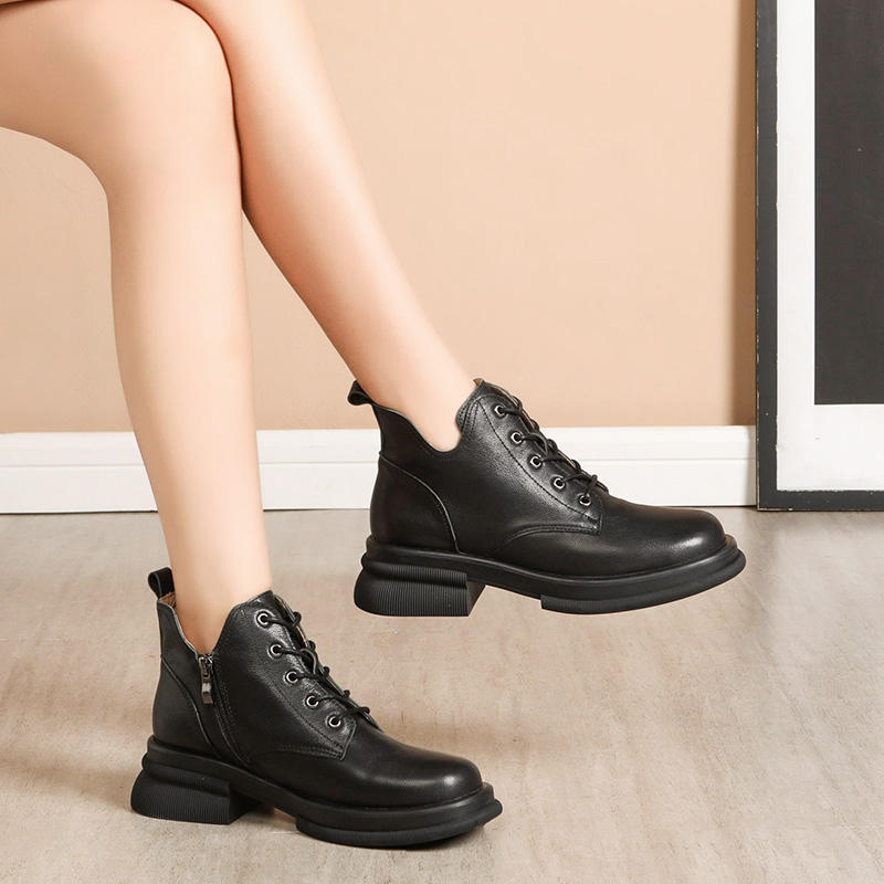 วิคตอเรีย คริสติน่า เฮสเกธ รองเท้าบูทหนังวัวแท้ขนาดใหญ่พิเศษ แฟชั่นซิปผูกเชือก รองเท้าบูทแบบเปิดส้น บุขนหนานุ่ม พื้นหนา