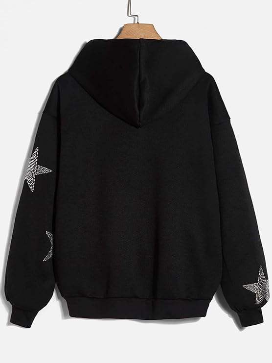เสื้อฮู้ดดี้แขนยาวแบบซิปเต็มตัว ยี่ห้อ Victoria Industry รุ่น Unisex ประดับดาวคริสตัล สไตล์ Y2K ระบายอากาศได้ดี ผ้าซักแล้ว น้ำหนักเบา ไร้ตะเข็บ รีไซเคิลได้