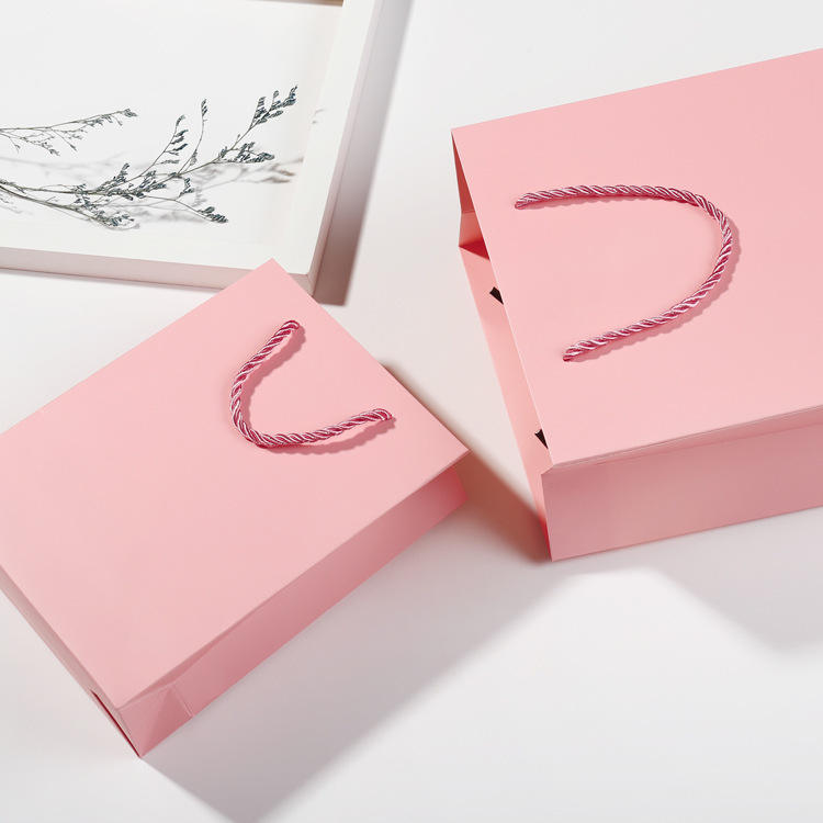 ถุงกระดาษคราฟท์สีชมพูลับของวิคตอเรียที่มีด้ามจับสำหรับการช็อปปิ้งการพิมพ์ออฟเซ็ตบรรจุภัณฑ์เสื้อผ้าและรองเท้ารีไซเคิลได้