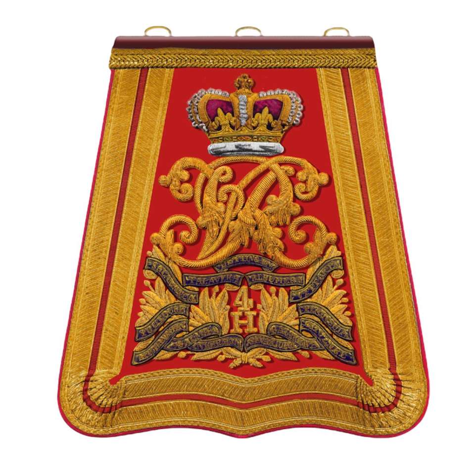 กระเป๋าใส่ดาบแบบแบนของกองทหารม้าราชวงศ์วิคตอเรียสมัยพระเจ้าฮัสซาร์ที่ 14 ที่แขวนอยู่บนเข็มขัดของกองทหารม้าพร้อมกระเป๋า