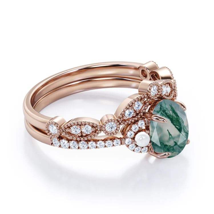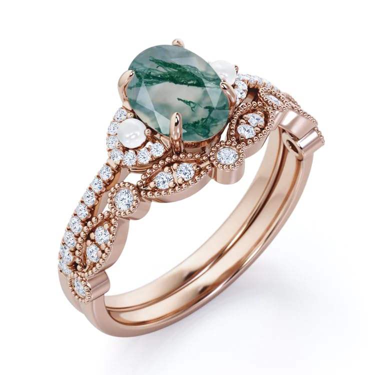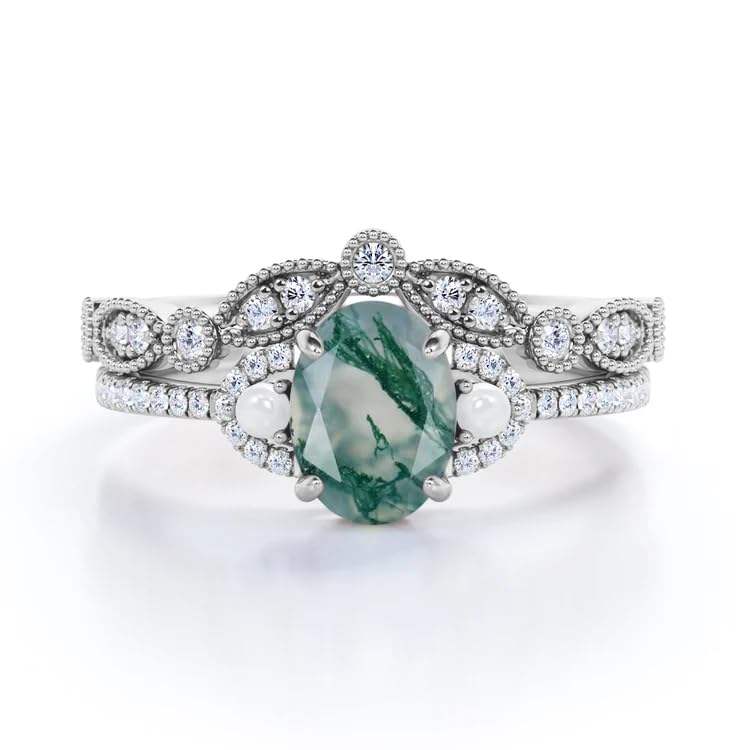 แหวนหมั้นเพชรเซอร์โคเนียสำหรับผู้หญิงพลอยเทียมสีเขียวมอสตัดทรงรีจาก925วิกตอเรีย