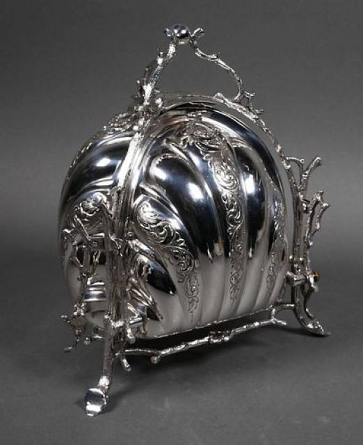 กล่องใส่ขนมปังชุบเงินแบบพับได้สไตล์วิคตอเรียนกล่องใส่ขนมปังทรงหอยฝาพับดีไซน์สลักบนแท่นตกแต่งบ้าน
