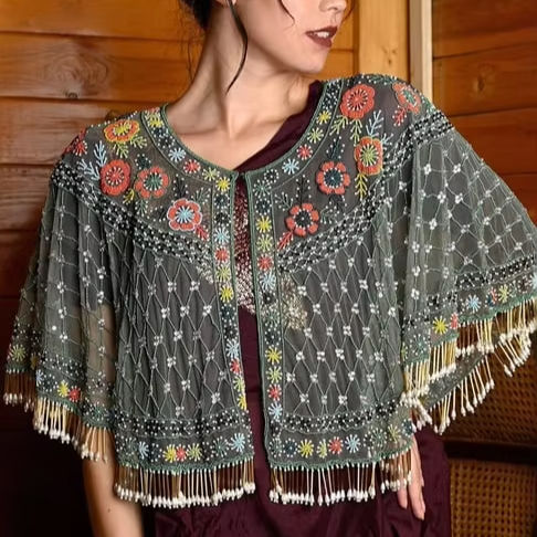 เบอร์เลสก์วิกตอเรียนแฮนด์เมดเสื้อคลุมปาร์ตี้ทรงตรง100% ลูกปัดโพลีเอสเตอร์ปักเลื่อมไข่มุกแนววินเทจที่งดงาม