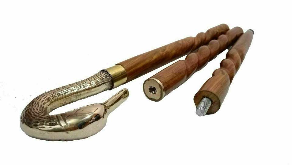 Victorian Designer Antique Brass Swan Head Handle Vintage Style Wooden Walking Stick Cane 36" Inch Best Product Item