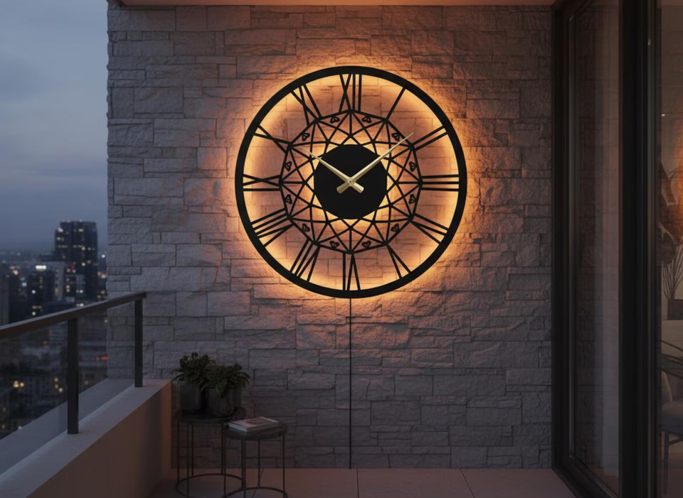 นาฬิกาแขวนผนังโลหะ LED ตัวเลขโรมันสไตล์วิคตอเรียน – เงียบสงบ ตกแต่งอย่างหรูหราสไตล์อินดัสเทรียล