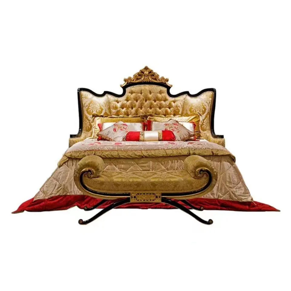 โครงเตียงไม้มะฮอกกานีแกะสลักด้วยมือสไตล์วิคตอเรียน พร้อมที่เก็บของ หัวเตียงหุ้มเบาะแบบทัฟท์ ซักทำความสะอาดได้ ชุดห้องนอนหรูหราขนาดคิงไซส์