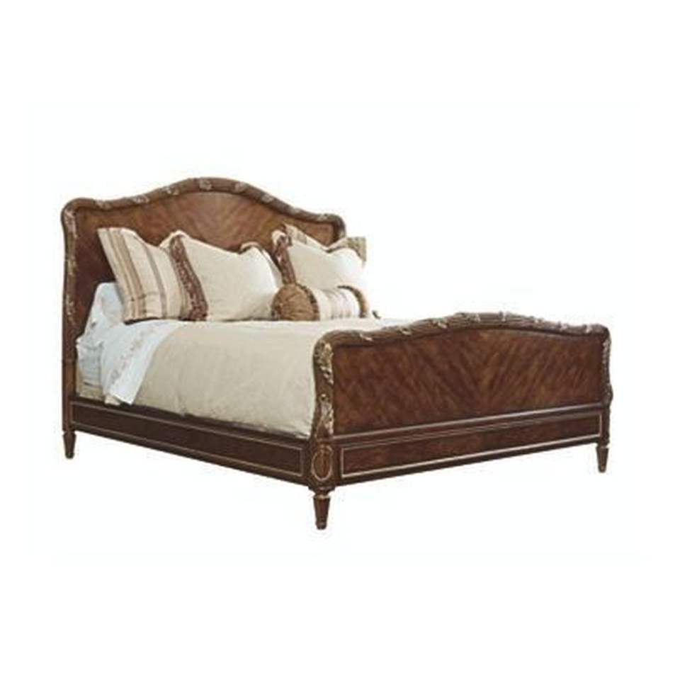 เตียงไม้มะฮอกกานีแกะสลักลายสไตล์วิคตอเรียนสีน้ำตาล