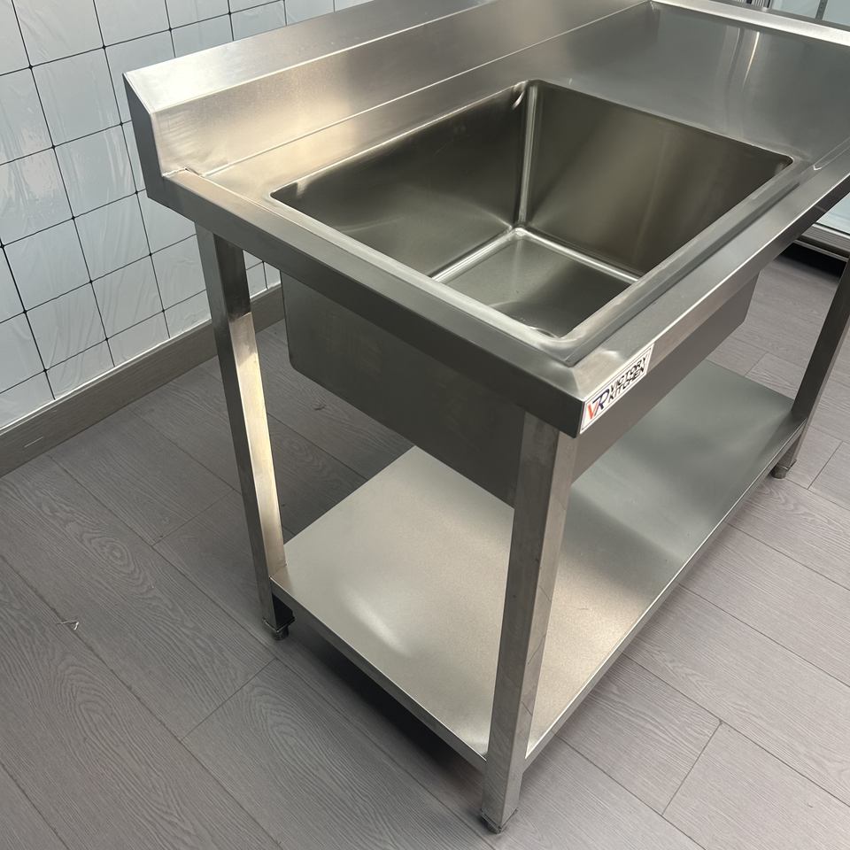 อ่างล้างจานเดี่ยวทำจากสเตนเลสพร้อมกระดานระบายน้ำสำหรับโรงแรมร้านอาหารห้องปฏิบัติการ