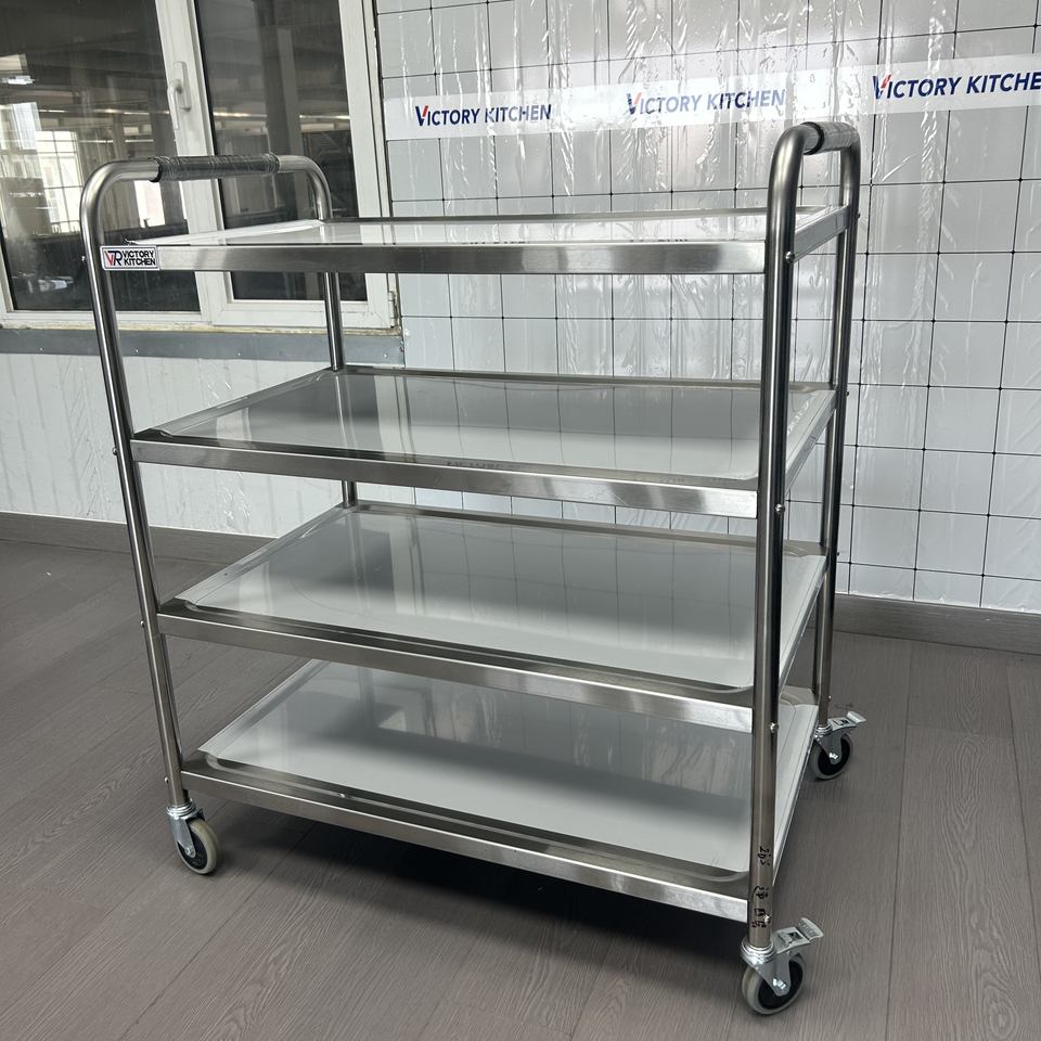 Victory รถเข็นสี่ชั้นสแตนเลสกันสนิมเฟอร์นิเจอร์ร้านอาหารทันสมัยสำหรับบริการอาหารร้านอาหารใช้รับประทานอาหาร