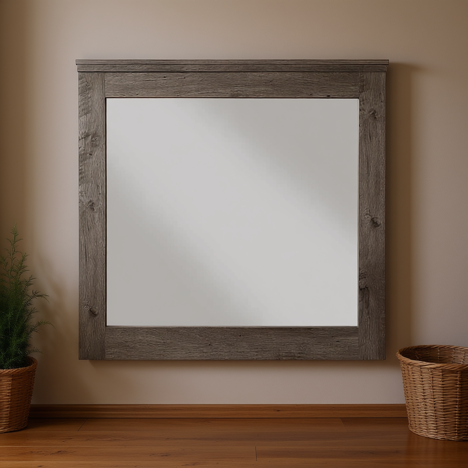กระจกติดผนังทรงสี่เหลี่ยมผืนผ้า กรอบไม้โอ๊คสีเทาแบบวินเทจ ยี่ห้อวิดาเลีย สำหรับตกแต่งบ้าน