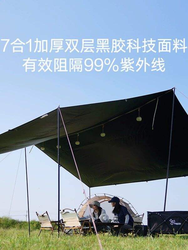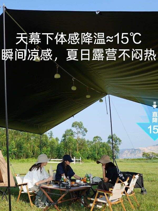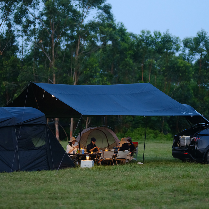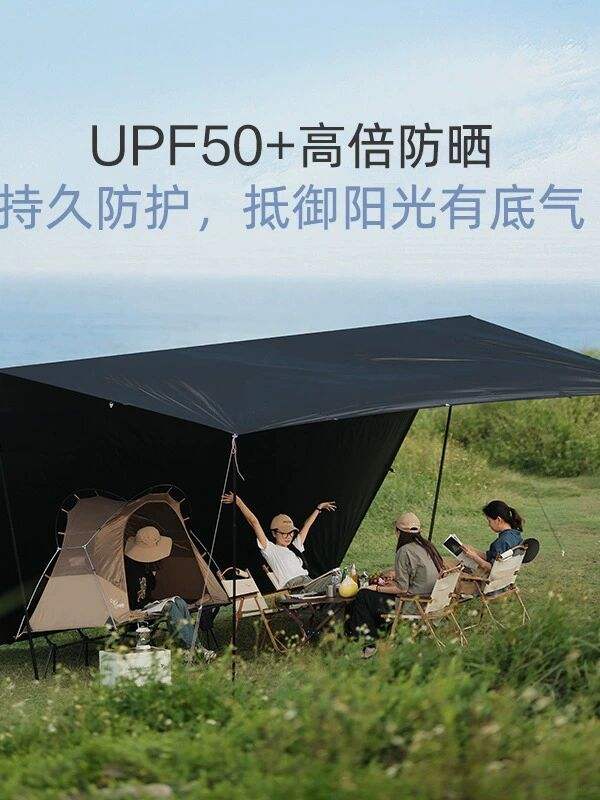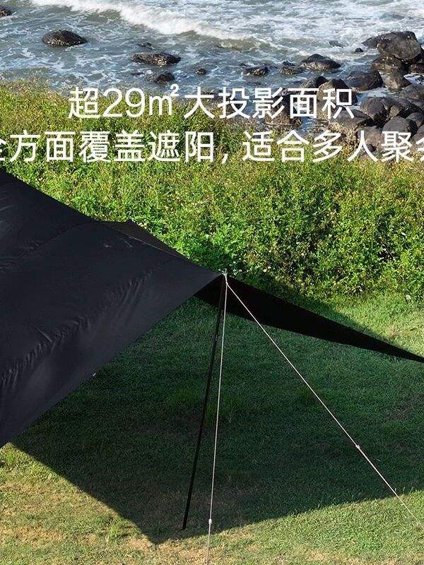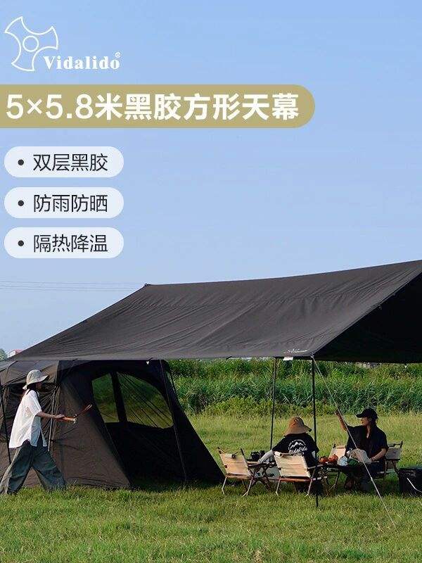 ที่บังแดดสำหรับแคมป์ปิ้งกลางแจ้งแบบมีที่บังแดดพร้อมม่านสีดำ
