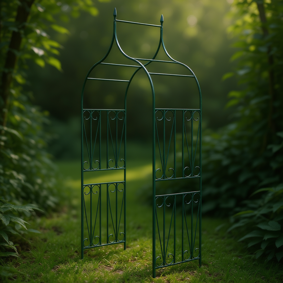 ซุ้มสวนวิดักซ์เอ็กซ์แอล สีเขียวเคลือบผงเหล็ก ดีไซน์แบบมีปุ่มสำหรับพืชเลื้อย ตกแต่งภายนอก