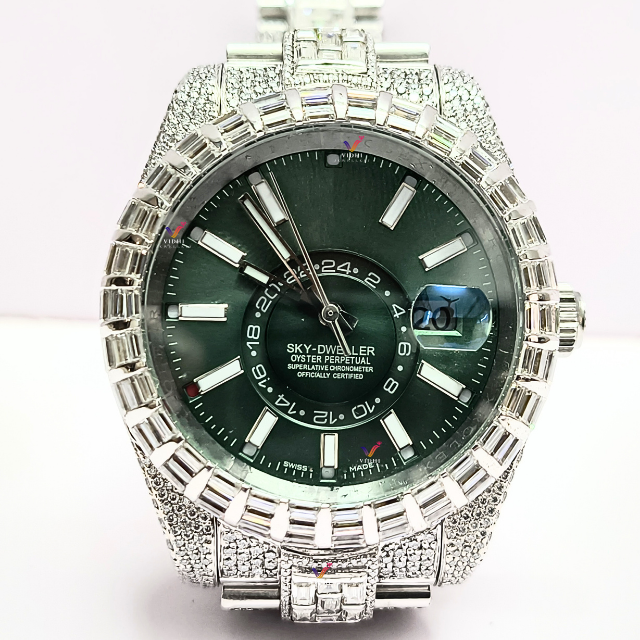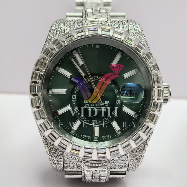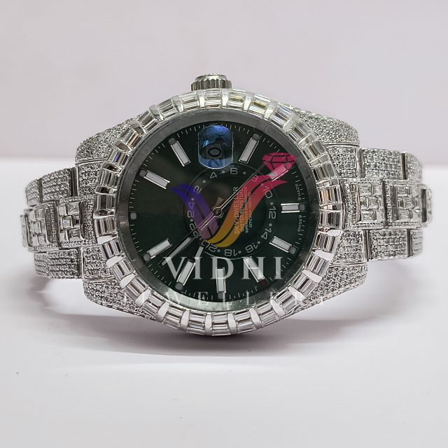 Vidhi เครื่องประดับนาฬิกากลไกอัตโนมัติหรูหราสำหรับผู้ชายปรับแต่งเพชร VVS Moissanite 3BAR แก้วหนังกันน้ำ
