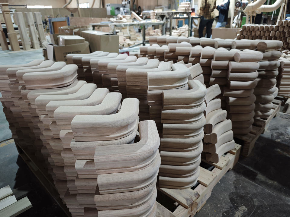 ราวจับบันไดไม้โอ๊คขาว รุ่น 7008-WO ปลายโค้ง แบบดั้งเดิม สำหรับใช้ภายในและภายนอกอาคาร ระเบียง ขายดีที่สุดจากโรงงานเวียดนาม