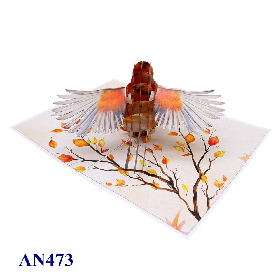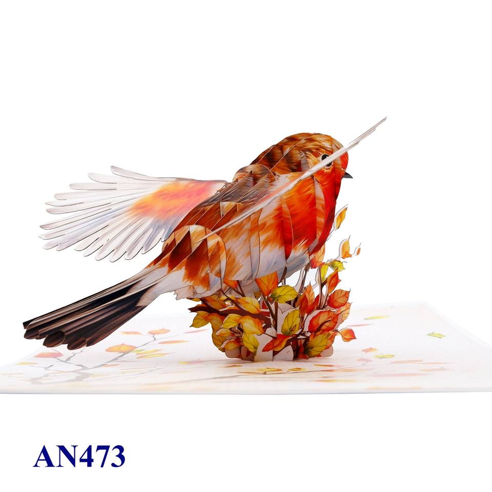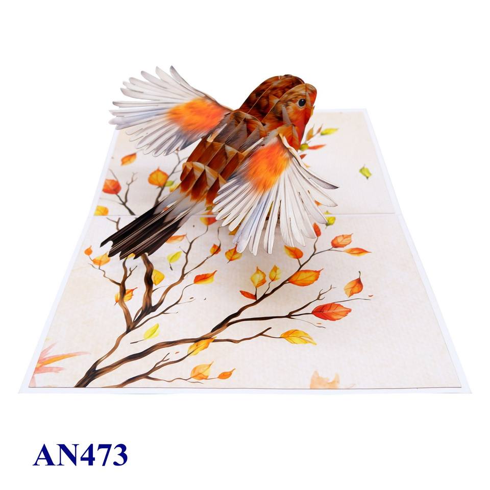 การ์ดอวยพรแบบป๊อปอัพ 3 มิติ รูปนกโรบิน งานแฮนด์เมด ดีไซน์ใหม่จากเวียดนาม พิมพ์ออฟเซ็ต ลายสัตว์ ของขวัญวันเกิด