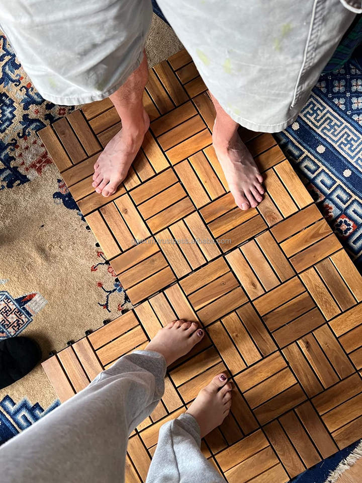 กระเบื้องไม้เวียดนามอะคาเซียสำหรับภายนอกอาคาร แบบประกบกันได้ กันน้ำ กันลื่น หนา 18 มม. - ดีไซน์ร่วมสมัย ผิวด้าน ได้รับการรับรองมาตรฐาน FSC