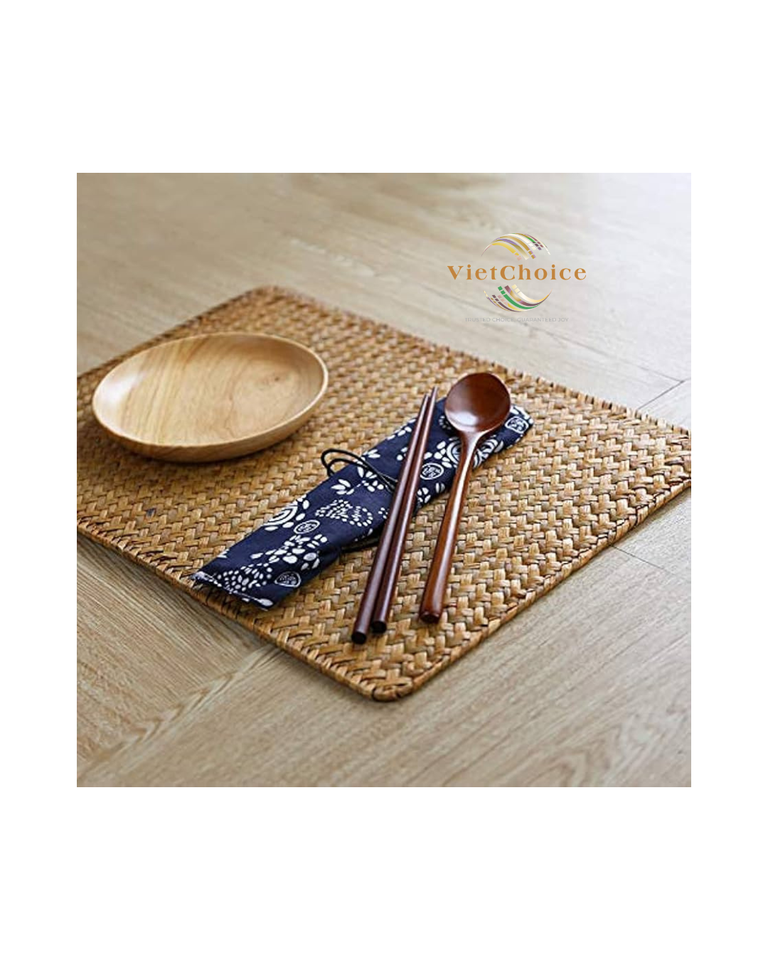 แผ่นรองจานสานไม้ไผ่ทรงสี่เหลี่ยมแบบเวียดนาม ขนาด 3 มม. ใช้ได้สองด้าน เป็นมิตรกับสิ่งแวดล้อม สไตล์บ้านไร่ แผ่นรองแก้วแบบเรียบง่าย เช็ดทำความสะอาดได้