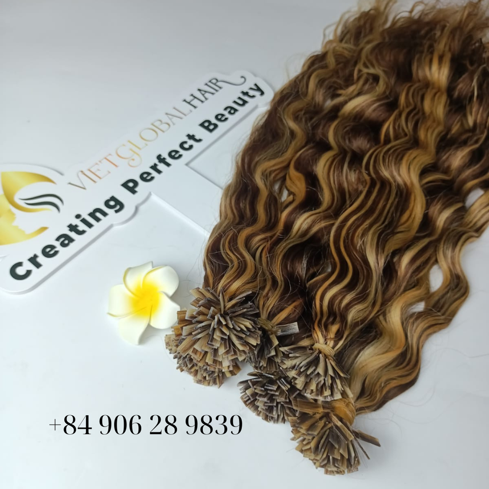 Vietglobal เทปผมต่อปลายแบนแบบลอนธรรมชาติผมจริงสีธรรมชาติที่นุ่มและนุ่มสลวย