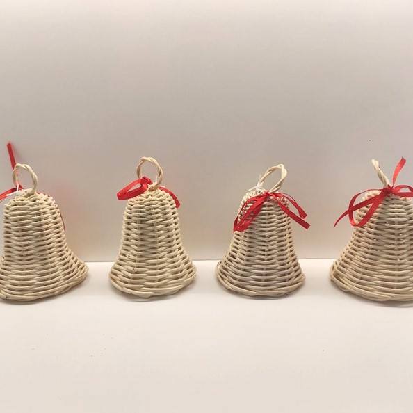 กระดิ่งหวาย6อันจากเวียดนาม,เครื่องประดับหวายทรงระฆัง,ต้นคริสต์มาสสำหรับตกแต่ง