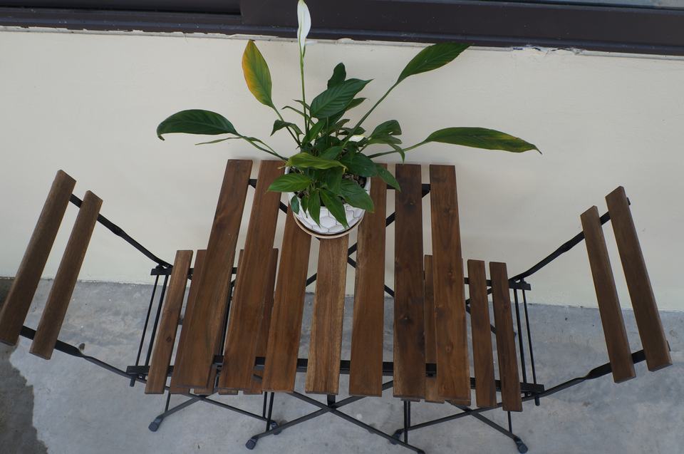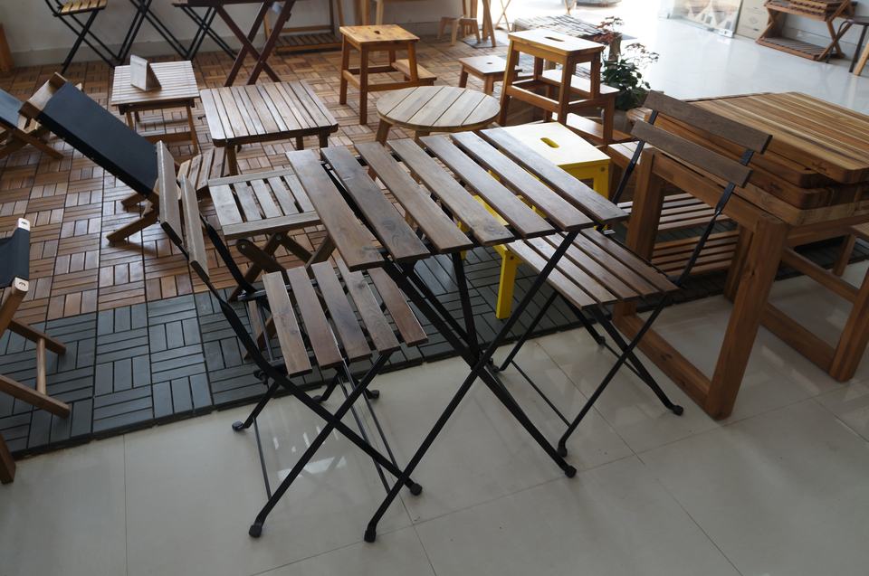 เวียดนามวัสดุอะคาเซียโครงเหล็กพื้นไม้สำหรับร้านอาหารการออกแบบที่ทันสมัยสำหรับระเบียงสวนสถานที่กลางแจ้งมาตรฐานญี่ปุ่น