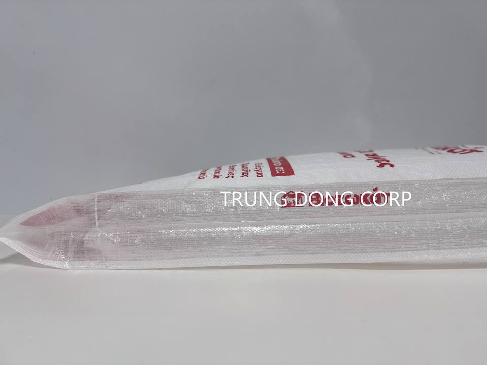 ถุงผ้าทอ PP โพลีเมอร์ลามิเนตจากเวียดนามพร้อมฟิล์มใสอุปกรณ์เสริมและเย็บเปิดง่ายสำหรับการจัดเก็บ5กก. ถึง50กก.