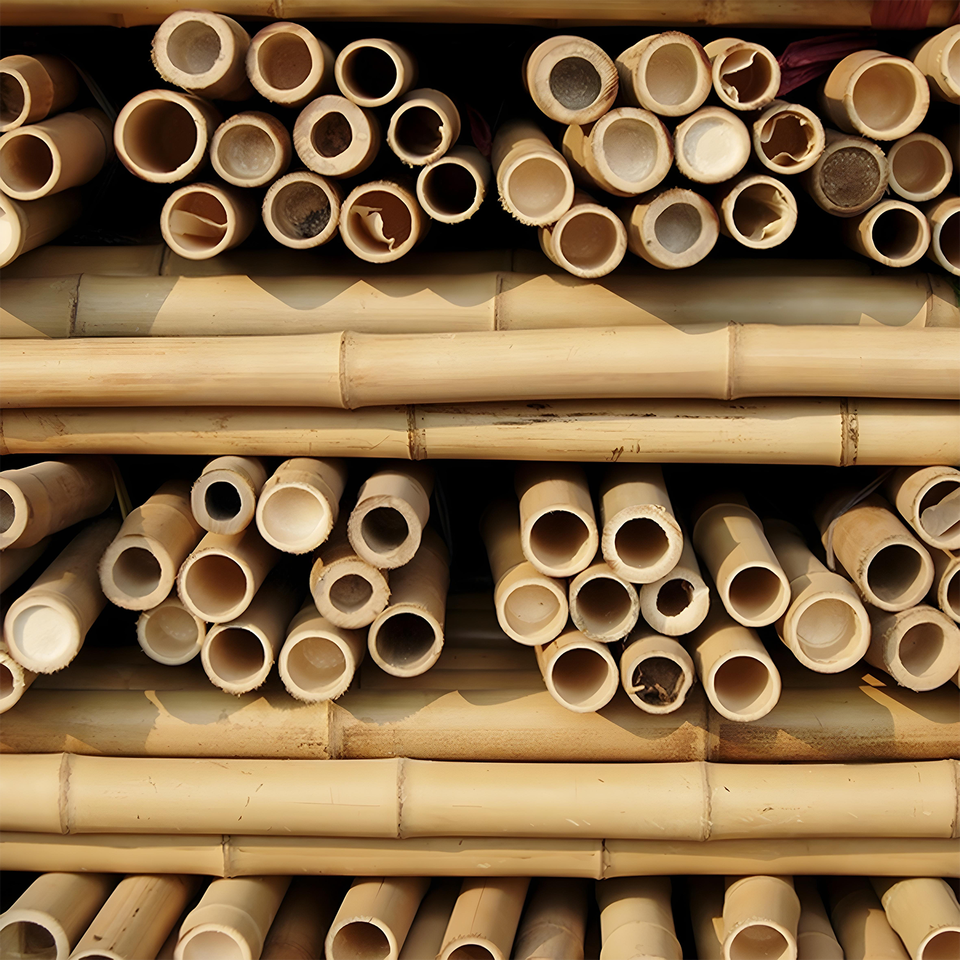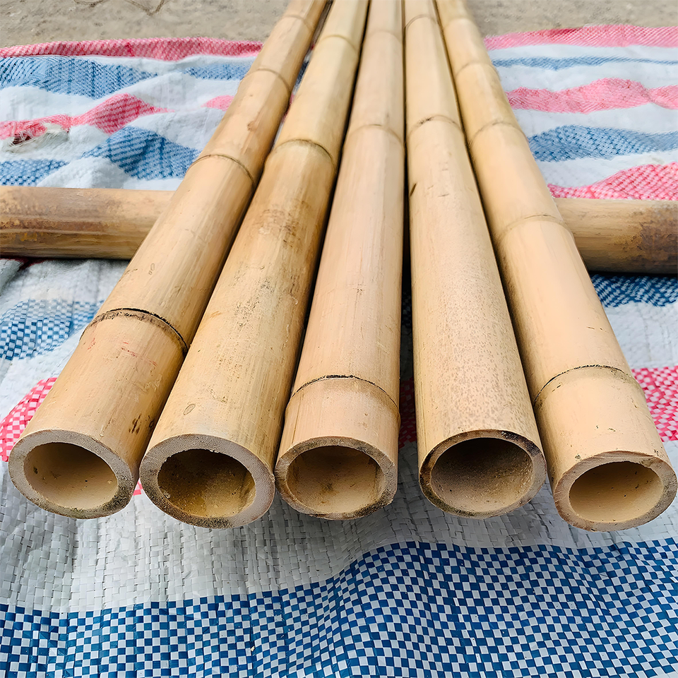 เสาไม้ไผ่กลวงแบบเวียดนามแท่งก้านไม้ธรรมชาติแข็งแรงทนทานสำหรับตกแต่งไซต์ก่อสร้างขายส่งได้ตามต้องการ