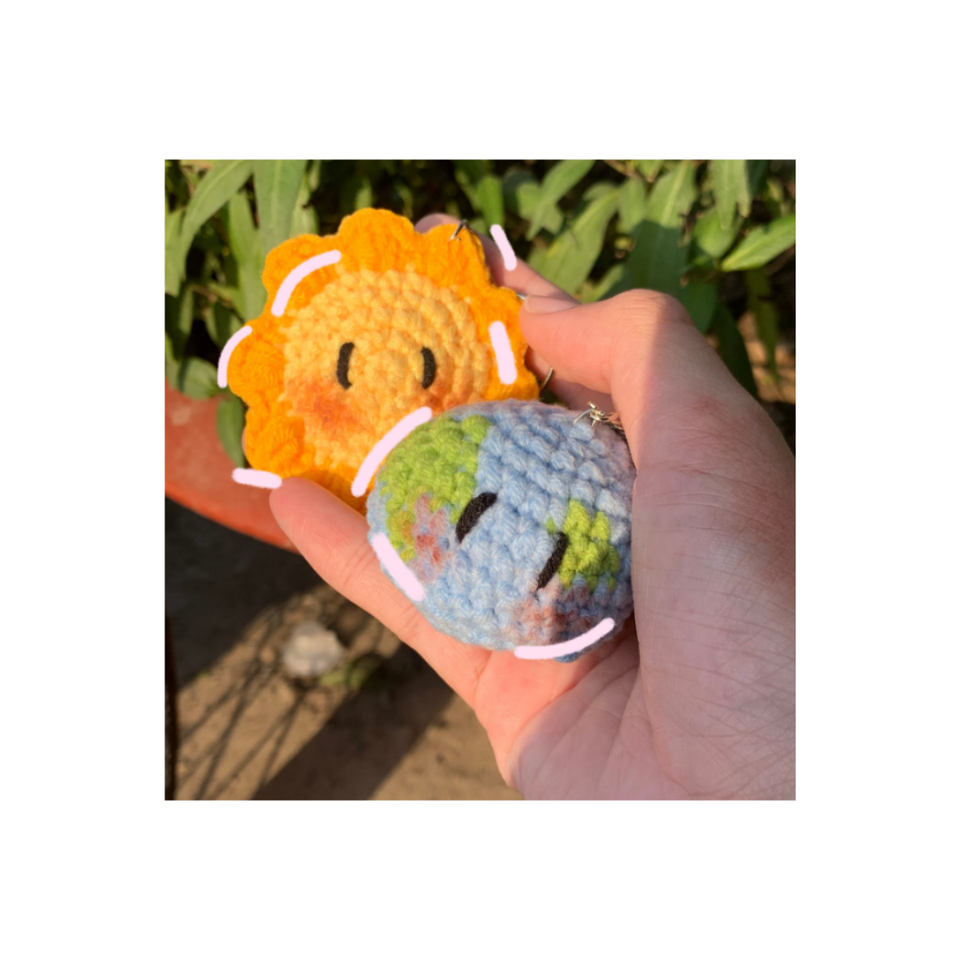 เวียดนามราคาที่ดีที่สุด amigurumi ดวงอาทิตย์และโลก - ขนาดและรูปร่างที่กําหนดเองดวงอาทิตย์และโลกขายพวงกุญแจถักมือราคาต่ํา