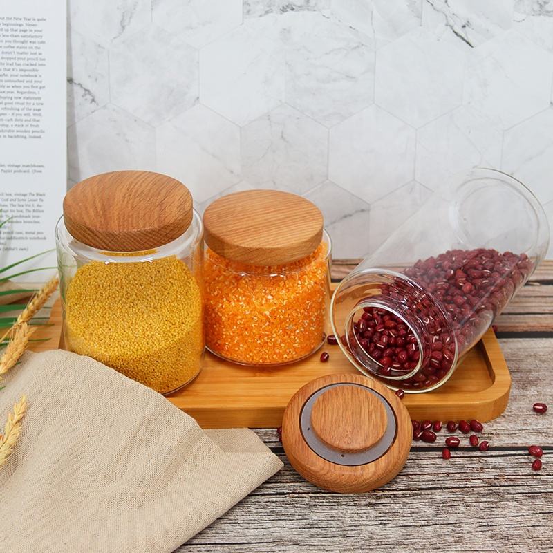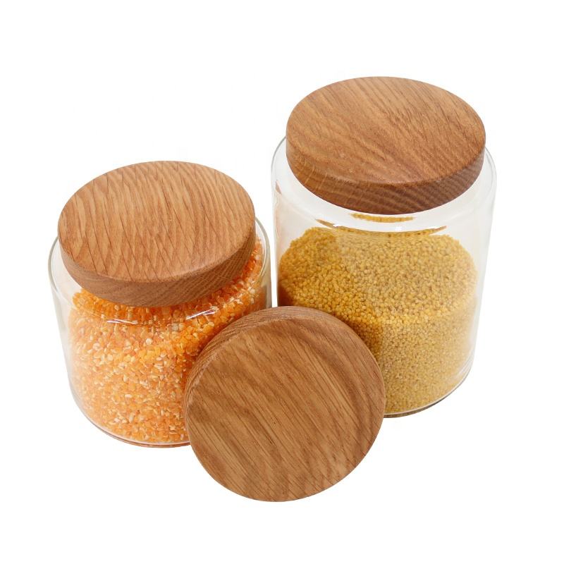 เวียดนามแบรนด์การออกแบบใหม่ผลิตที่กำหนดเองรอบโอ๊คไม้เมสันขวดแก้วที่มีฝาปิด