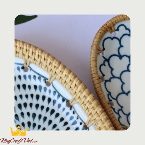 ถาดใส่อาหารเซรามิกและหวายสานด้วยมือถาดเสิร์ฟอาหารสำหรับตกแต่งโต๊ะสินค้าใหม่ส่งได้จากเวียดนาม