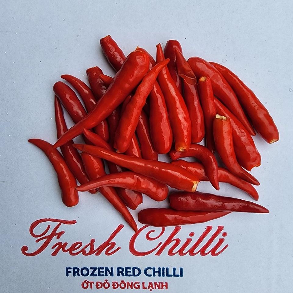 พริกยาวสีแดงแช่แข็ง IQF จำนวนมาก พริกชิลีปลูกในเรือนกระจกเวียดนาม เกรดพรีเมียม บรรจุภัณฑ์สุญญากาศ ราคาแข่งขัน ผักแช่แข็ง