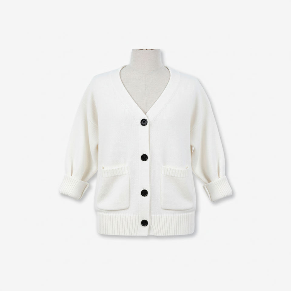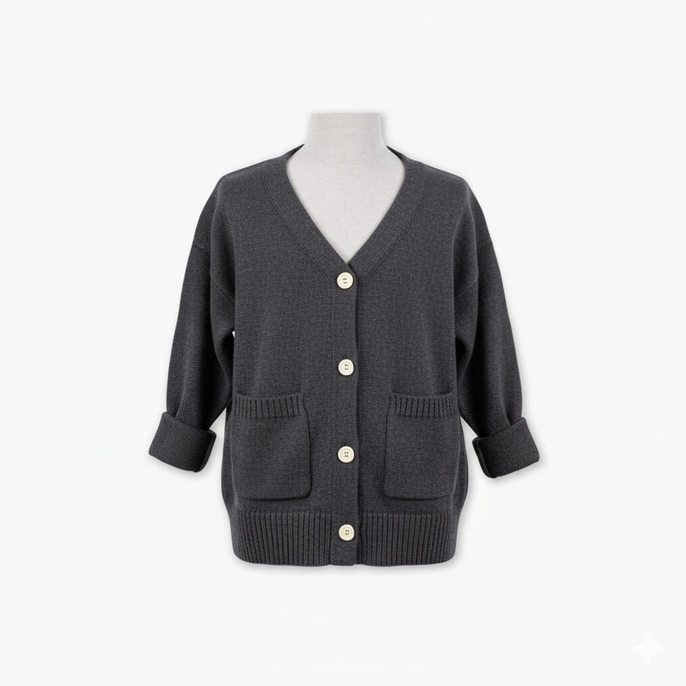 เสื้อคาร์ดิแกนถักลายเวียดนาม 4 กระดุม มีกระเป๋า ทรงลำลอง คอวี สีพื้น 100% อะคริลิก กันยับ
