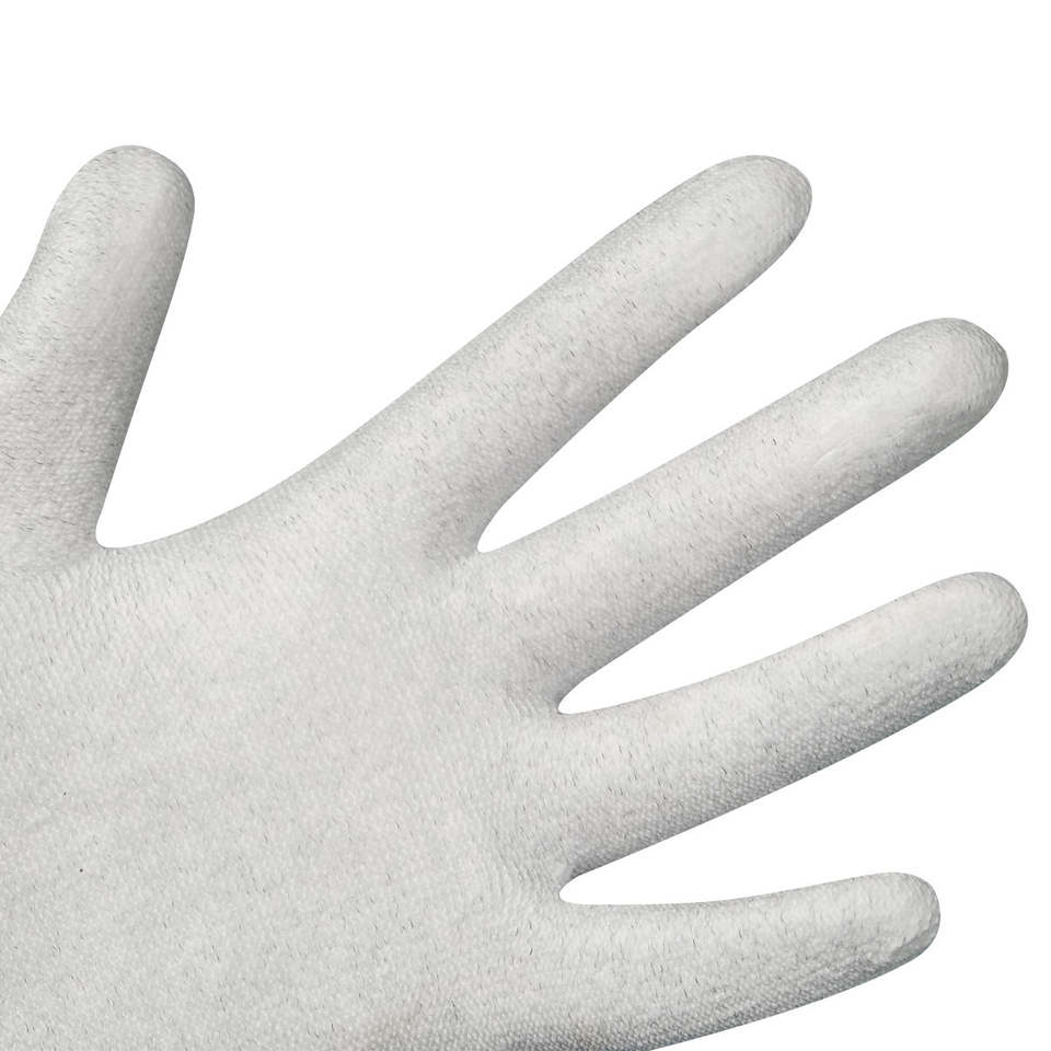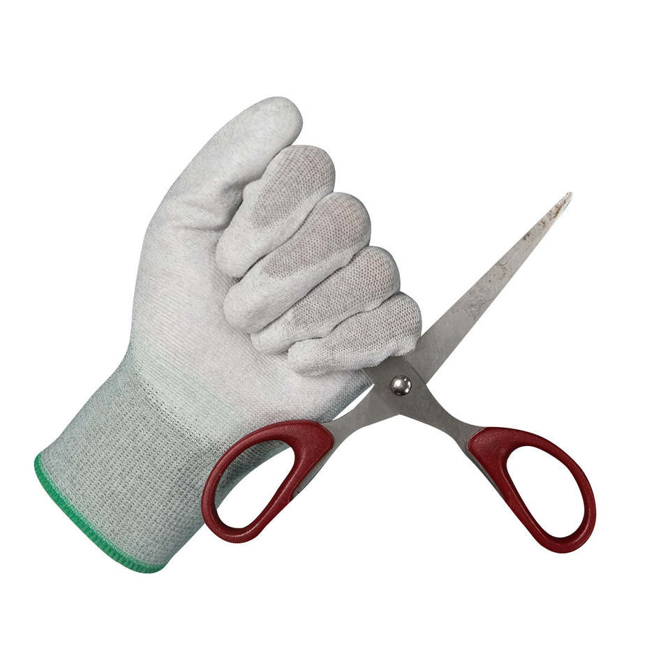 ถุงมือป้องกันไฟฟ้าสถิตย์คาร์บอนไฟเบอร์เวียดนาม ข้อมือถักยืดหยุ่น เคลือบ PU เรียบบริเวณฝ่ามือ สำหรับงานเซมิคอนดักเตอร์ PCB ออปติกส์ ป้องกันฝุ่น