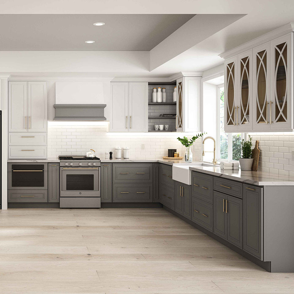 ชุดตู้กับข้าวไม้แข็งกันน้ำ RTA ชุดตู้ครัวสีเทาดีไซน์ทันสมัยจากเวียดนาม