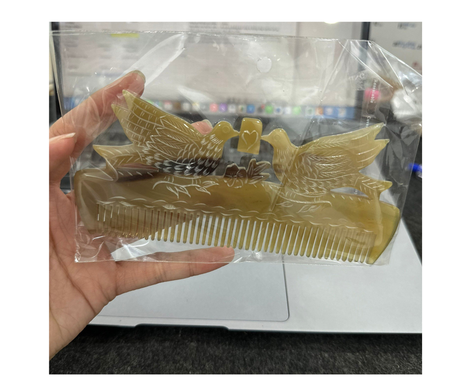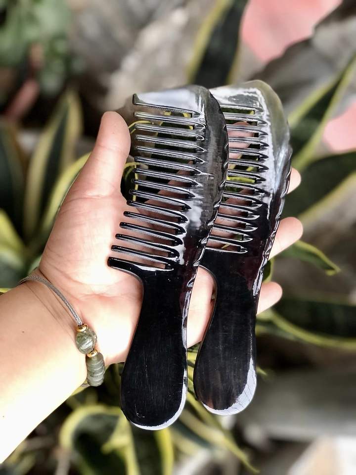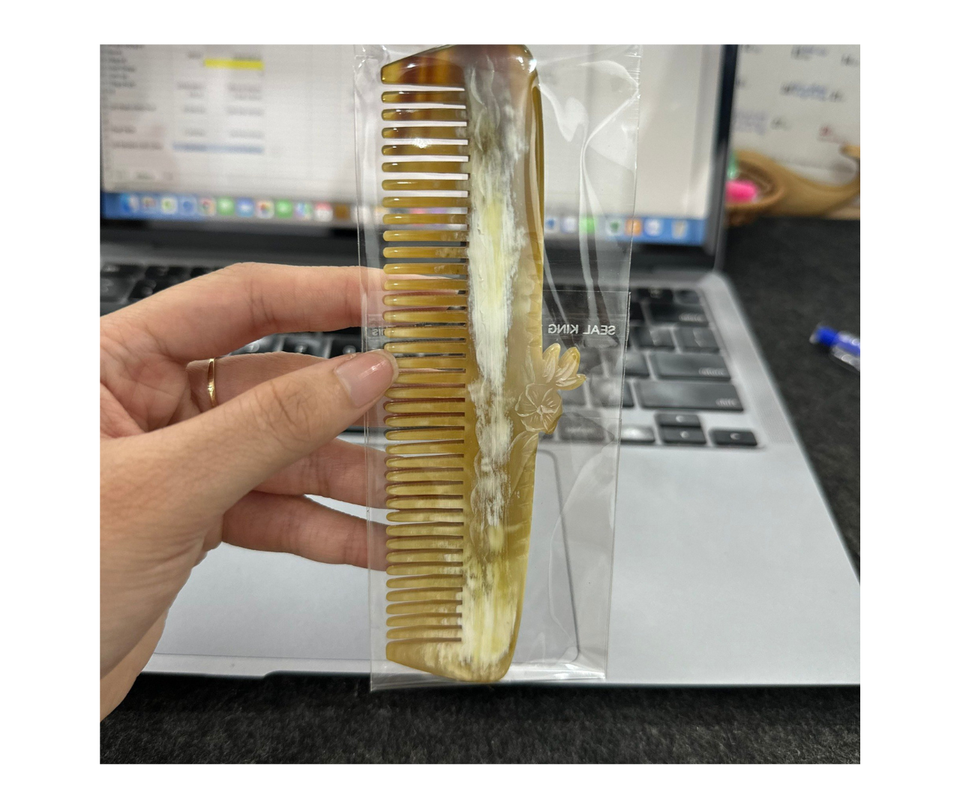 Vietnam Craft Gentle Detangler Polished Buffalo Horn Comb for Hair and Beard Comfortable Fashion Style with Goat Hair Horn Comb