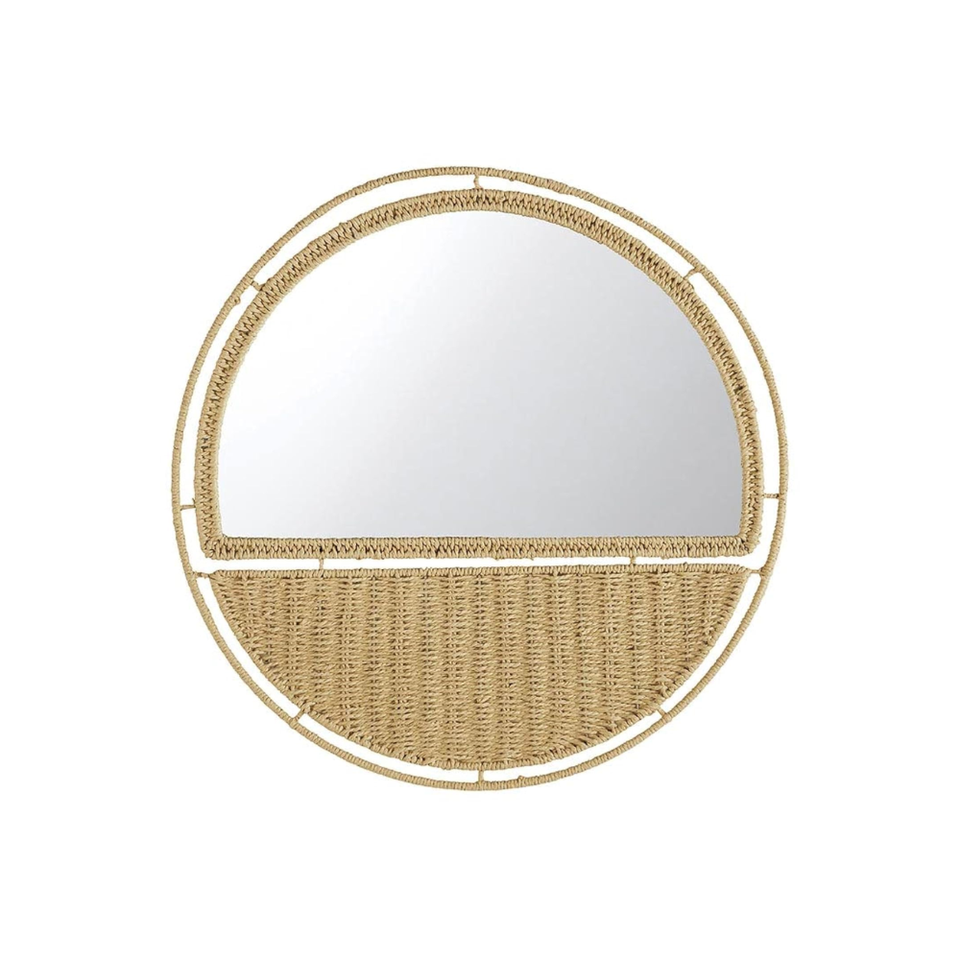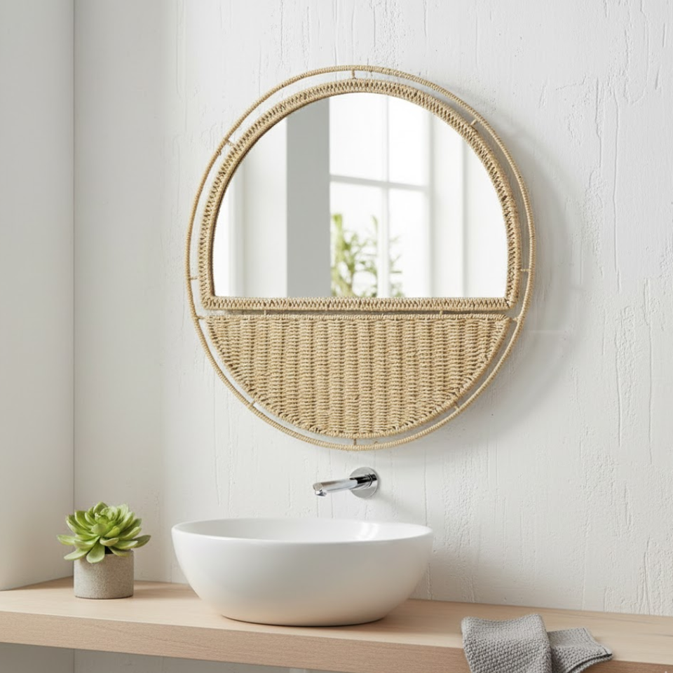กระจกแขวนทรงกลมหวายทะเลสไตล์รัสติก